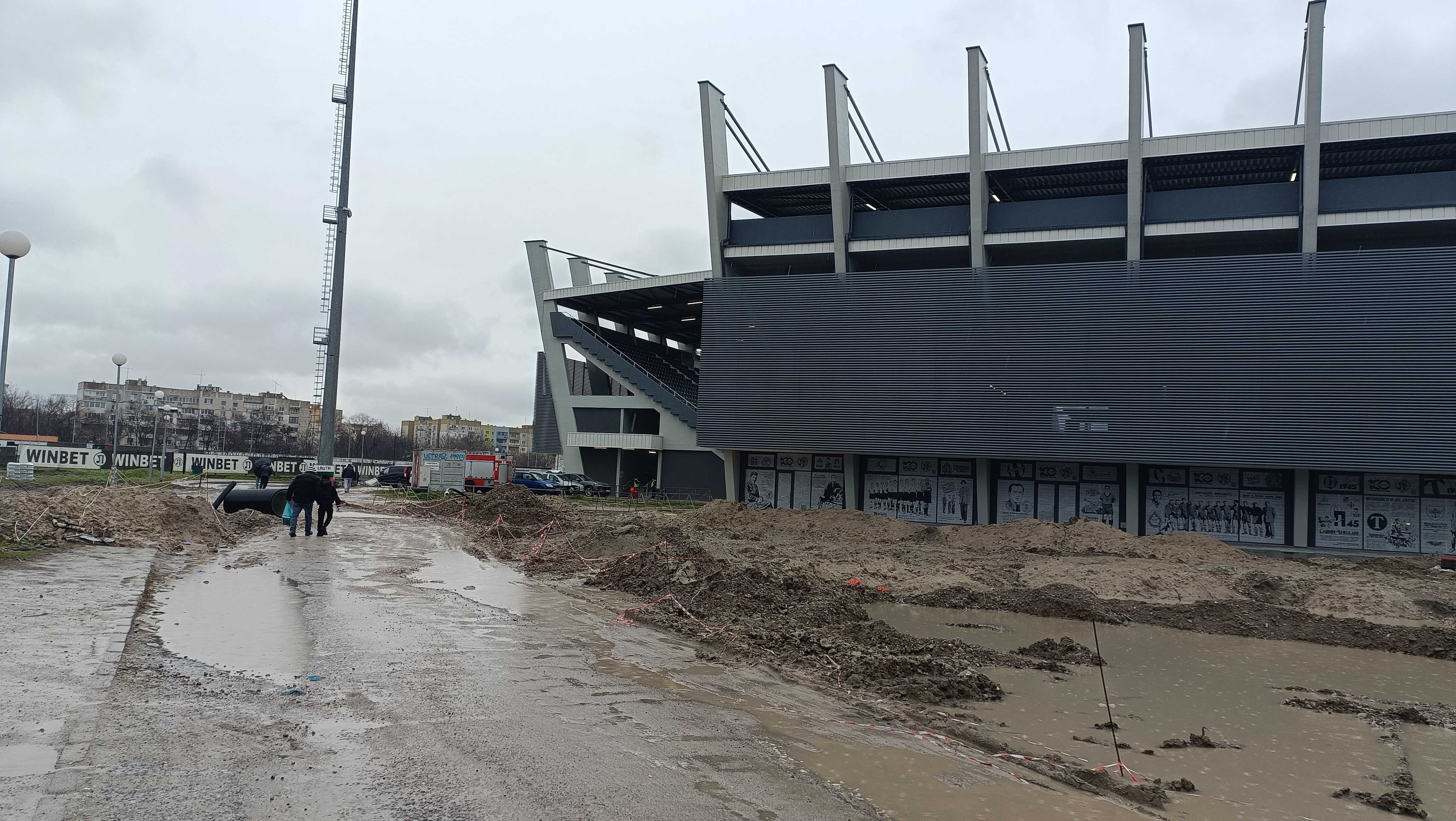 |  | | Droga na stadion - jeszcze nie wszystko zostało ukończone, dlatego wygląda to... specyficznie | |