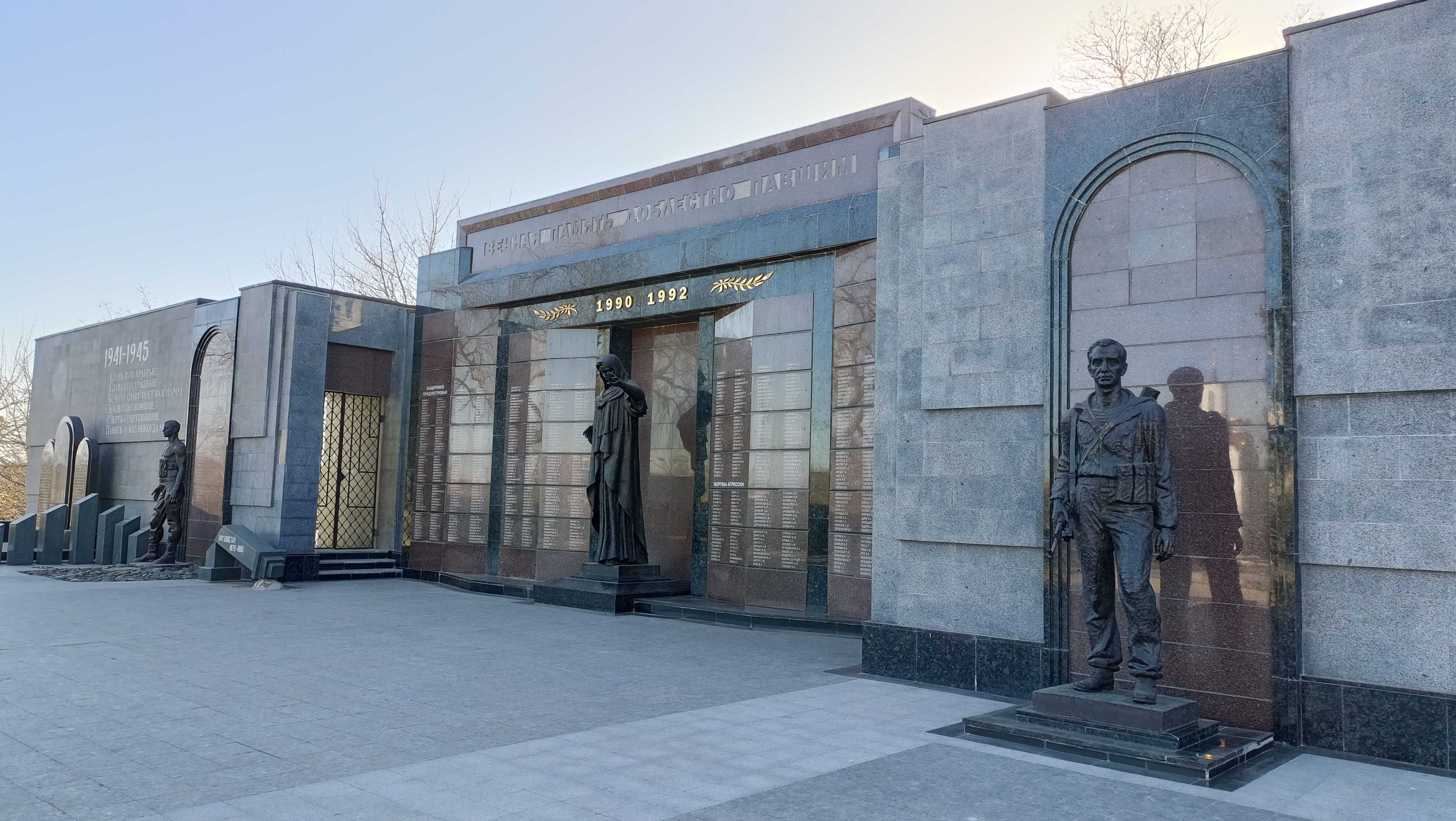 |  | | Pomnik upamiętniający tych, którzy zginęli w różnego rodzaju wydarzeniach - od prawej: Wielka Wojna Ojczyźniana (II wojna światowa, przyp. chom.), Wojna mołdawsko-naddniestrzańska, wojna w Afganie oraz katastrofa w Czarnobylu | |