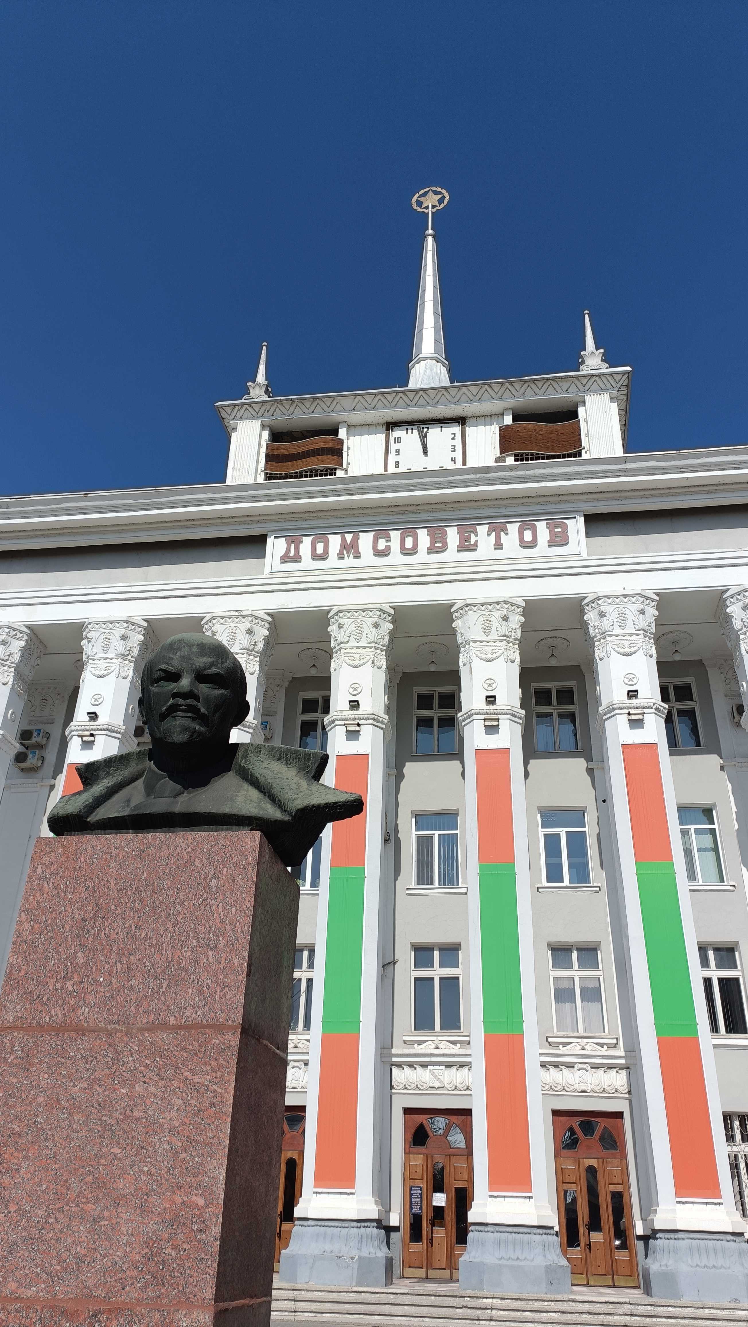 |  | | Siedziba Rządu Naddniestrza i pomnik Lenina (co ciekawe, budynek ten znajduje się na 50-rublowym banknocie, ale Lenina już tam nie ma) | |
