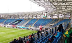 Arena Lublin, obiekt liczący 15,5 tysiąca miejsc. Przede wszystkim, jest to obiekt piłkarski (co nie przeszkodziło zorganizowania na nim koncertu latino czy disco-polo), dzięki czemu trybun od boiska nie odgradza żadna bieżnia - choć w Lublinie łatwiej niż na bieżnię jest natrafić na tor żużlowy. Stadion ma dość prostą konstrukcję, ale jest bardzo estetyczny, zarówno na zewnątrz, jak i wewnątrz. Niebiesko-granatowe krzesełka wyglądają bardzo dobrze szczególnie w TV, gdy nie są zasłaniane przez kibiców, siedzi się na nich również bardzo dobrze. Dwa duże telebimy pozwalają na wyświetlanie dowolnie skomplikowanych treści - ich potencjał nie jest jednak za bardzo wykorzystywany, ponieważ podczas meczu wyświetlany jest na nich tylko wynik, względnie komunikat o treści GOOOOOOL . Stadion ma dobrą akustykę, okrzyki plecy! , czas! , czy prawa ręka! są bardzo dobrze słyszalne z trybun. W każdym razie, stadion jest na tyle dobry, że aż trzeba było sprowadzić na niego drużynę z innego miasta - z całym szacunkiem dla Motoru, jest to dość zabawne, że gospodarzem na takim stadionie jest III-ligowiec.