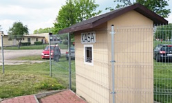 Nieopodal bramy głównej stadionu za ogrodzeniem stała dość niepozorna budka. Kiedy jednak przyjrzałem się jej bliżej, okazało się, że znajdowało się w niej niewielkie okienko, a przed tym okienkiem - przerwa w szczebelkach płotu, również wielkości okienka. Przez te otworki w jedną stronę wędrowały pieniądze, a w drugą bilety. Niestety, w kasie nie było żadnych pamiątek (szał na pamiątki był parę lat temu, kiedy Oskar wszedł do ówczesnej III ligi, grupy łódzko-mazowieckiej), tak więc otrzymany bilet był moją jedyną materialną pamiątką. O, przepraszam - pół biletu. Dość chamski ochroniarz przedarł go bowiem idealnie na pół (określenie chamski nie wynika wyłącznie z przedarcia biletu - ogólnie zachowywał się w dość chamski sposób).