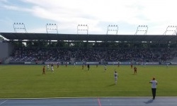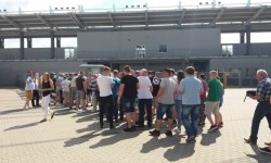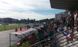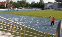 Cóż, to był jeden z czynników, przez które zastanawiałem się, czy jest sens wybierać się na mecz Radomiaka. Stadion Radomiaka obecnie jest jednym wielkim placem budowy, a drużyna rozgrywa mecze na obiekcie MOSiR Radom na Narutowicza. Czyli innymi słowy… na obiekcie Broni Radom. Owszem, bardzo lubię ten stadion, ale te niebiesko-biało-czerwone krzesełka to niezbyt adekwatna sceneria dla meczów Radomiaka. Ciekawostka: stadion nie spełnia wymogów Nice 1. Ligi (ze względu na niewystarczające sztuczne oświetlenie), co jest powodem do tworzenia całkiem sensownych teorii spiskowych, że Radomiak celowo odpuszcza w tym sezonie walkę awans, aby nie musieć rozgrywać 1.-ligowych meczów w… no właśnie. Kielcach? Puławach? Ostrowcu? Warszawie?Na tym meczu natknąłem się też na coś, czego już dawno nie widziałem, mianowicie… na kolejkę do bramek biletowych. Na meczach, na których bywam, jest bowiem z reguły mniej widzów niż na kolejce zamieszczonej na zdjęciu. Kiedy udało mi się po dobrych kilku minutach stania w kolejce przejść przez bramkę biletową, pierwszy raz w życiu nie przeszedłem kontroli u ochrony stadionu. Ochrona przyczepiła się do pełnej puszki z energy drinkiem Radomiaka, co w sumie było całkiem uzasadnione – i byłem gotów się jej pozbyć. Ale oprócz tego przyczepiła się również do pustej puszki po energy drinku Radomiaka, którą też miałem z sobą w charakterze „pamiątki z Radomia”. Przyczepili się nawet do kubka, który parę godzin wcześniej zakupiłem w Galerii Słonecznej (na szczęście Gołąb był nietykalny). Zostałem więc zawrócony do punktu depozytowego (w międzyczasie kolejka do bramek biletowych zdążyła wydłużyć się dwukrotnie, ale na szczęście udało mi się wcisnąć bez ponownego stania w kolejce).Obiekt MOSiR Radom Stadion Broni to bardzo fajny obiekt. Schludny, pachnący świeżością stadion lekkoatletyczny z dwoma trybunami (i małym sektorem gości), w sumie na nieco ponad 4000 osób. Na stadionie można zakupić lemoniadę oraz giętą z grilla, a na uwagę zasługuje również estetyczna tablica wyników. Wszystko byłoby OK, gdyby nie fakt, że jestem kretynem i w tak gorący dzień jak ten wybrałem sobie miejsce na trybunie północnej. Nie chciałem się bowiem pchać na trybunę południową, gdzie zwykle zasiadają bardziej zagorzali kibice. Moje rozumowanie było jednak dość ułomne, bowiem…