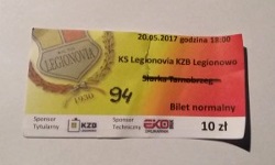 Trafić z Warszawy do Legionowa nie jest wielką filozofią – w jedną stronę pokonaliśmy tę trasę Szybką Koleją Miejską, wróciliśmy Kolejami Mazowieckimi. W Legionowie też raczej ciężko jest się zgubić, stąd bez większego problemu dotarliśmy na stadion (kiedy byłem w Legionowie po raz pierwszy, rzeczywiście trochę krążyłem wokół obiektów sportowych, a jeden z policjantów nawet spytał mnie, czy nie jestem kibicem gości… ze swoją posturą z pewnością wyglądam jak członek grupy wyjazdowej). Jedyną ciekawostką tego dnia były bardzo osobliwe bilety sprzedawane na dzisiejszy mecz - był to po prostu stary bilet z meczu z Siarką, na którym wykreślono nazwę rywala (choć należy przyznać, że spośród wszystkich drużyn, na które w zeszłym sezonie Legionovia wydrukowała bilety, Siarka rzeczywiście ma nazwę zdecydowanie najbliższą Zniczowi).