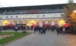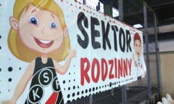 Zdążyłem już opisać tu i ówdzie stadion Polonii, dlatego w tym poście opiszę jedynie to, co zmieniło się tu w stosunku do poprzednich meczów. Przede wszystkim, ze względu na duże zainteresowanie kibiców Widzewa tym meczem, zdecydowano się na odstąpienie Łodzianom nie tylko sektora gości, ale również połowy trybuny Głównej. Wiedziałem o tym jeszcze przed meczem i zastanawiałem się, jak to zostanie rozwiązane - czy np. trybuna Główna oraz dziedziniec przed stadionem Polonii zostaną przedzielone barierkami na pół. Jak się okazało, nie doszło do żadnego dzielenia terenu - przed budynkiem stadionu kibice Widzewa mieszali się z kibicami Polonii, po czym każdy udawał się na swój sektor. Przy okazji, ja też miałem swój sektor - sektor rodzinny. Ze względu na baaardzo duże zainteresowanie dzisiejszym meczem, zapobiegawczo zakupiłem swój bilet trzy dni wcześniej, ale i tak musiałem się zadowolić miejscem na peryferiach.