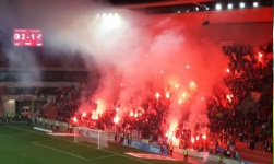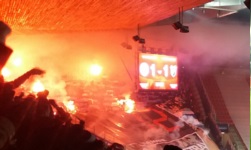 W trakcie meczu kibice obydwu drużyn śpiewali głównie niezbyt skomplikowane rzeczy, ale ja i tak nie ogarnąłem, o czym była większość piosenek – na pewno Slavia śpiewała dość często „Slavie do toho” (czasem też coś, co brzmiało mniej więcej jak „My chcemy gol”). Jeśli chodzi o wydarzenia kibicowskie, mecz zdecydowanie zdominowali jednak goście. Baník gdzieś w okolicach 20. minuty zaprezentował pierwszą oprawę w tym meczu – z sektorówką i kartoniadą. Następnie, po wykonaniu niezbędnych czynności pod sektorówką, dopełniono dzieła pirotechniką. Przy okazji na płocie Baníka zapłonęła jedna flaga Slavii – tyle że taka z rodzaju tych „kieszonkowych”, nie jakaś konkretna. Wszystko wyglądało bardzo fajnie, ale w pewnym momencie race zaczęły latać – na boisko, na bufor, w pikników, w ochroniarzy (jednego nawet poparzyło). Następnie Baník próbował wydostać się z klatki, co wywołało pewne poruszenie na pikniku (z drugiej strony, fani Slavii z trybuny Sever ponoć kręcili się przy buforze i również dążyli do konfrontacji), a wszystko zakończył wjazd policji na sektor gosci i gazowanie. Obydwie trybuny – gości i gospodarzy, zaśpiewały wtedy zgodnie coś, co tym razem zrozumiałem (szczególnie, że leciało to tak samo jak w Polsce): „Český fotbal pro fanoušky” Nie mam nic przeciwko pirotechnice, a przerywanie meczów z powodu zadymienia stadionu jak dla mnie są ciekawym elementem folklorystycznym, który można by wpisać na listę światowego dziedzictwa UNESCO – po oprawie Baníka sędzia przerwał mecz na jakieś 5-6 minut. Co do rzucania racami na boisko, w ochronę, czy w piknik (a od początku meczu rzucano na boisko petardami hukowymi)… to już bynajmniej nie ubogaca kultury.