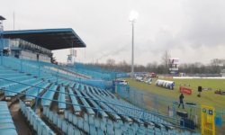 Stadion im. Kazimierza Górskiego został oddany do użytku w tym samym roku, w którym miał miejsce Mecz na Wembley. To być może częściowo tłumaczy, skąd wzięło się imię jego Patrona, ale przede wszystkim tłumaczy to, dlaczego stadion obecnie wygląda jak wygląda. Jest to obiekt lekkoatletyczny starego typu, tzn. szeroki i dość płaski pierścień trybun okrążający boisko piłkarskie i bieżnię lekkoatletyczną (co prawda obecnie bieżni tutaj nie ma, ale wygląda na to, że kiedyś musiała tu być). Stadion liczy ok. 10.000 miejsc siedzących i trochę nieoficjalnych miejsc stojących, ponieważ część kibiców woli w trakcie meczu stać przy barierkach za krzesełkami.Istnieje podział na trybunę wschodnią i zachodnią. Wschodnia to trybuna fanatyków, na której znajdował się młyn – nie było tam natomiast mnie. A z racji tego, że dzieliła mnie od niej pewnie ponadstumetrowa odległość (2x szerokość hipotetycznej bieżni + standardowe 68m szerokości boiska), nie mogę o niej zbyt dużo powiedzieć. Nie była zadaszona, a na jej środku znajdował się młyn. Znajdowało się na niej dużo mniejszych lub większych tabliczek i banerów reklamowych, co robiło średni efekt wizualny. Ponoć kiedyś na jej północnym skraju znajdował się sektor gości, co było oczywiście dość niefortunnym rozwiązaniem i już się z tego wycofano.Ja zaś znajdowałem się na trybunie zachodniej, która prawdopodobnie wyglądała dokładnie jak wschodnia, tyle że znajdowało się na niej parę upgrade’ów. Po pierwsze, nad centralną częścią trybuny znajduje się zadaszenie, które wygląda trochę jak minimalny dach pozwalający na otrzymanie przez obiekt licencji na Ekstraklasę. Pod dachem poza krzesełkami znajdowało się trochę zabudowanej przestrzeni, prawdopodobnie stanowiska spikerskie/komentatorskie czy centrum dowodzenia ochrony. Na północnym krańcu trybuny znajdowała się dość duża klatka gości, oddzielona od reszty trybuny jednym sektorem buforowym. W trybunie znajdowało się też parę tuneli wychodzących na boisko, jednak jak się okazało, piłkarze z nich nie korzystali, ponieważ ich szatnie znajdowały się w niedużym budynku klubowym, który stał od południowej strony boiska. Od strony północnej można było zobaczyć wyświetlacz, a na horyzoncie: kominy przemysłowej części Płocka. Obszar dookoła boiska był pozastawiany reklamami, autami i różnego rodzaju sprzętami, co dawało marny efekt estetyczny – generalnie cały stadion rzeczywiście jest już przestarzały. Nie jest to z mojej strony jakaś złośliwość ponieważ przyznawali to również ludzie na pikniku, a młyn parę razy o tym nawet śpiewał.