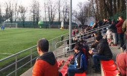 Bardzo lubię obiekt Ursusa, ponieważ jest on idealnie skrojony na miarę takiego klubu. Solidny, trzecioligowy klub (naprawdę solidnie zakorzeniony w trzeciej mazowieckiej, spędza tu już 8. sezon - choć w zeszłym sezonie był bliski spadku do czwartej ligi, a przed katastrofą uratowało go zwycięstwo w ostatniej kolejce z walczącym o awans ŁKS-em i surrealistyczna wygrana Huraganu Wołomin z rezerwami Jagiellonii), bez mocarstwowych planów, za to bardzo poukładany. Obiekt liczy oficjalnie 1020 miejsc siedzących, a na tę liczbę składa się trybuna główna z pomarańczowymi i niebieskimi krzesełkami układającymi się w wyraz URSUS, niewielka trybunka pod wyświetlaczem (na wyświetlaczu niestety nie można wyświetlać nazw drużyn i na stałe znajduje się tam napis URSUS - GOŚCIE ), gdzie czasami tworzy się młyn, oraz ogrodzony sektor gości. Na stadionie jest niestety bieżnia, ale ze względu na jej nienaganny stan i intensywnie bordowy kolor akurat w tym przypadku komponuje się ona przynajmniej z kolorystyką stadionu. Po rundzie jesiennej za pieniądze z budżetu obywatelskiego zainstalowano na trybunie głównej całkiem estetyczne częściowe zadaszenie w kolorze niebieskim, ogrodzono stadion i postawiono bramki biletowe. Oczywiście to nie jest tak, że wcześniej łatwo było wejść na mecz na lewo, bo sam kompleks OSiR jest ogrodzony. Tyle tylko, że sprzedaż biletów i kontrolę przeprowadzano wcześniej w bramie OSiR, a jest wiele osób, które udają się na teren kompleksu np. plac zabaw, mini-park linowy na pływalnię albo pograć w tenisa. Teraz stadion został wyodrębniony z OSiR w nieco bardziej profesjonalny sposób.OK, skoro już opisałem stadion, to czas na typowy kreskówkowy gag:- To gdzie odbędzie się dzisiejszy mecz? - Widzisz ten stadion? Taki ładny, z pomarańczową trybuną i niebieskim dachem? - Tak.- To nie tam.Ze względu na ostatnie wariacje pogodowe, murawa nie nadawała się jeszcze do gry (albo też chciano przełożyć oficjalne otwarcie odnowionej trybuny na lepsze warunki niż 5'C), dlatego też dzisiejszy mecz odbywał się na bocznym boisku ze sztuczną murawą. W trzeciej lidze coś takiego jest dopuszczalne. Tutaj opis stadionu nie nastręcza większych trudności. Trybuna jest jedna - cztery rzędy niezbyt wygodnych czerwonych siedzisk bez oparcia. Za to bardzo schludna, ponieważ siedzenia są nowe, barierki też, a stopnie trybuny wyłożone są równą kostką brukową. Mecz można również bez problemu obejrzeć za darmo - zza ogrodzenia za jedną z bramek, lub ewentualnie wzdłuż linii bocznej (co może być nieco problematyczne, ponieważ chyba znajduje się tam droga). Wyświetlacz jest identyczny jak na boisku głównym, z tym, że znajdują się na niej tym razem napisy GOŚCIE - GOSPODARZE (w tej kolejności).Należy też wspomnieć (trochę nie po kolei, ale nie chciałem umieszczać tego elementu tuż obok suchych żartów), że na terenie OSiR znajduje się też stała wystawa o Krzysztofie Nowaku (Numer 10 naszych serc ), najsłynniejszym wychowanku klubu RKS Ursus. Krzystof Nowak spędził w Ursusie całą juniorską karierę, skąd ruszył w świat większej piłki, grając najpierw w niesławnym Sokole/Miliarderze z Pniew/Tych, następnie w Panachaiki, Legii (tu akurat tylko 1 mecz), Atletico Paranense, w końcu trafiając do VfL Wolfsburg, gdzie przez trzy kolejne sezony był podstawowym zawodnikiem. Jego karierę, a następnie życie przedwcześnie zakończyła choroba ALS.