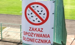Stadion Warty jest typowym dziełem PRL-owskiej myśli technicznej (niczym stadion Boruty Zgierz, czy Hutnika Warszawa), która polega na tym, że tworzy się ziemną nieckę, w środku której znajduje się (niestety, zazwyczaj otoczone bieżnią - generalnie obserwatorzy na takich stadionach znajdują się dość daleko od właściwej akcji) boisko piłkarskie. Zaś na obrzeżach niecki (o ile pozwala na to budżet) buduje się trybuny. W przypadku obiektu Warty, jest to jedna trybuna położona wzdłuż linii bocznej - znajduje się na niej w sumie jakieś 1300 (o ile umiem dobrze mnożyć) krzesełek w nierozróżnialnych kolorach jasno-zielonym i jasno-niebieskim. Jedna czwarta tej trybuny jest zadaszona dość prostą, kanciastą konstrukcją, na zwieńczeniu której napisane jest po prostu OŚRODEK SPORTU i REKREACJI . Co prawda obejrzałem tę trybunę dokładnie (najbardziej spodobał mi się zakaz spożywania słonecznika - podczas gdy w Warszawce mozna napotkać jedynie zakazy palenia), jednak ostatecznie zdecydowałem się na oglądanie meczu zza barierek znajdujących się naprzeciwko. Być może jestem za stary... albo po prostu nie chciałem mieć słońca prosto w twarz.