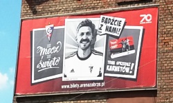 Stadion jest nowoczesny, ale jak już wspomniałem, jest to tak naprawdę 3/4 stadionu (Górnicy dogadaliby się pewnie łatwo z ŁKS-em). Mamy więc trzy nowe trybuny - dwie zabramkowe oraz jedną wzdłuż linii bocznej... a naprzeciw niej czwartą trybunę, będącą reliktem poprzedniego stadionu. Trybuna ta jest oczywiście niższa od pozostałych, kanciasta i głównie pokryta dużymi reklamami, ponieważ nie sprzedaje się na nią biletów. Znajdują się na niej głównie stanowiska komentatorskie, oraz stanowiska kamerzystów. I bardzo prosta tablica wyników, na której wyświetlają się czerwone cyfry pokazujące, ile bramek mają na koncie GOSPODARZE , a ile GOŚCIE . I co ciekawe, jest to na tę chwilę jedyne źródło wiedzy o wyniku spotkania, ponieważ na stadionie nie ma (jeszcze?) telebimów.