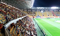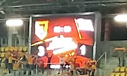 Jak już wielokrotnie pisałem, w przypadku opisywania meczu Ekstraklasy mam zwykle w tej części problemy. W necie są przecież setki zdjęć, setki informacji i to wszystko zapewne jest dużo lepszej jakości niż może zapewnić użytkownik, który kryje się pod pseudonimem gryzonia eksplorującego trociny. I oczywiście jak zwykle stwierdzę łaskawie, że przynajmniej spróbuję. Oczywiście stadion ładny, krzesełka wygodne, widoczność dobra, zadaszenie funkcjonalne (to piszę trochę w ciemno, ponieważ pogoda nie dała możliwości, żeby to zweryfikować). Po obydwu stronach za bramkami znajdują się telebimy - jeden z nich, ten od strony młynu Jagi (trybuna od północy), jest tablicą wyników, a na drugim, tym od południa, z braku laku wyświetlany jest mecz - i to z dobrym kilkusekundowym opóźnieniem. Taki trochę tryb replay.