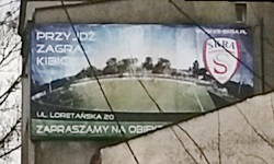 Trochę odbiegłem od nazwy sekcji, miało być coś o dojeździe na mecz . Otóż wsiadłem o 8.14 na stacji Warszawa Centralna w pociąg relacji Białystok - Żywiec (bez żadnego opóźnienia!) w wygodnego Darta i wysiadłem o 10.39 na stacji Częstochowa. Tam, po dłuższym spacerze po mieście doszedłem do wąskiej uliczki, która wyglądała, jakby prowadziła do ogródków działkowych, a nie na stadion (rzeczywiście, po drodze mija się ogródki działkowe) i tylko widok masztów oświetleniowych upewnił mnie, że idę w dobrą stronę. Gdy doszedłem pod stadion, na ogrodzonym zwykłą taśmą parkingu stała duża grupa kibiców Olimpii (i Zagłębia), nieopodal znajdowało się parę radiowozów i kilku funkcjonariuszy. Pełna kultura, bez podejmowania żadnych szalonych środków bezpieczeństwa. Inna sprawa, że taki spokój przy organizacji przyjazdu gości na sektor można osiągnąć tylko w takich piknikowych miejscach jak właśnie Skra.