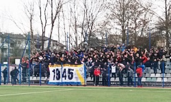 Na przeciwległym biegunie byli za to fani gości, którzy stawili się w swoim sektorze w liczbie ok. 150 osób (a może nawet trochę więcej). Nawet biorąc pod uwagę, że jakąś połowę tej liczby stanowili fani zgody z Sosnowca, wynik ten i tak jest bardzo dobry - przecież oni jechali z Elbląga do Częstochowy, na mecz o godzinie 12:00. Goście wywiesili na ogrodzeniu sektora jedną dużą flagę, o treści 1945 (z podpisem Wtedy zaczęła się historia tego Ludu; historia tych Barw, historia tego Klubu ). Przy dzisiejszym huraganowym wietrze, aby flaga się nie uszkodziła, przez większość meczu kilka osób opierało się o nią od strony płotu. Goście od początku 1. połowy prowadzili dobry doping, przy czym nie będę przytaczał Jesteśmy zawsze tam... i innych tego typu piosenek, tylko przejdę do ciekawszych: Oooooolimpia Elbląg, Ooooooooo, ZKS Oooooooolimpia Elbląg - Związkowy Klub Sportowy! (przy okazji, zawsze myślałem, że to Zakładowy Klub Sportowy)
