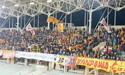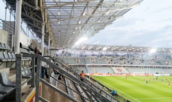 Powtórzę to, co pisałem już wielokrotnie przy okazji opisywania ekstraklasowych stadionów - dokładne opisywanie ich na tej stronie nie ma większego sensu, ponieważ stadion ten można zobaczyć w telewizji raz na dwa tygodnie. Schludny obiekt, z dość neutralnymi szarymi krzesełkami, z pierścieniem dolnym oraz górnym. Co ciekawe, na jednej z zabramkowych trybun mieści się młyn i znajduje się on... na górnym pierścieniu. Najprawdopodobniej jest to spowodowane tym, że dolny pierścień trybuny jest przedzielony w połowie jakimś wjazdem samochodowym, co sprawia, że nie można ustawić tam gniazda. Dlatego gniazdo znajduje się na górnym pierścieniu, na samym środku trybuny. Dokładnie nad tym wjazdem, co oznacza, że gdyby gniazdowy stamtąd spadł, przeleciałby jakieś 12-14 metrów i spadł na beton. W każdym razie, przy moim umiarkowanym lęku wysokosci, nie mogłem na niego patrzeć.