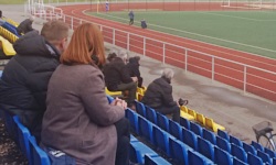Kibice raczej dopisali, biorąc pod uwagę dzisiejszą pogodę, ponieważ przed meczem lało konkretnie, aż zaparował mi obiektyw w smartfonie, przez co mój materiał zdjęciowy z dzisiejszego meczu jest spowity jasną poświatą. Nie było zorganizowanego dopingu, a co najwyżej oklaski i pokrzykiwania w kierunku murawy - oczywiście ze względu na nieznajomość litewskiego nie jestem w stanie przytoczyć tu żadnych ciekawostek. Parę razy ludzie na trybunach śmiali się z dialogów/tekstów zasłyszanych z boiska, które też były po litewsku. Co prawda nauczyłem się niedawno kilkudziesięciu użytecznych słów po litewsku, ale na boisku i trybunach nie padło żadne dzień dobry , proszę , dziękuję , chciałbym zgłosić gwałt , tak więc ta sekcja będzie wyjątkowo krótka.