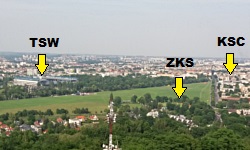 Głównym celem mojego wyjazdu do Krakowa nie był mecz, a odwiedzenie siostry, stąd stwierdziłem, że opisywanie w tym miejscu mojego dojazdu z Warszawy byłoby niekoszerne. Siostra w trakcie planowania naszych krakowskich atrakcji w przypływie dobrej woli zadeklarowała się, że może obejrzeć mecz wraz ze mną, z czego nie udało jej się wycofać. Tak więc, kiedy skończyliśmy zwiedzać Kopiec Kościuszkowski, zeszliśmy od razu na Błonia. Jak każdy wie, od północnej strony Błoń znajduje się stadion Wisły, od południowej - stadion Cracovii. Nie każdy jednak wie, że to jeszcze nie wszystko, co ma do zaoferowania okolica, ponieważ od zachodniej strony Błoń znajdują się obiekty ZKS-u.