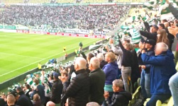 Śpiewano też dłuższe piosenki, które jak już wspomniałem, nie zapadły mi odpowiednio w pamięć. Ogólnie, pomimo wzajemnych bluzgów ze strony kibiców obydwu drużyn, pokazywania sobie faków itd., nie doszło do jakichś gorszących scen i odpalania rakiet, wszystko odbyło się w cywilizowanych warunkach.