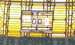 Stadion Energa. Prawdopodobnie najładniejszy w Polsce, ewentualnie jestem skłonny uznać go za drugi najładniejszy w Polsce, tuż za Narodowym. Z zewnątrz piękny, złoty kolor, od środka dach również wygląda znakomicie. Siedzenia bardzo wygodne, widok z nich jest znakomity, nawet jeśli komuś trafiło się miejsce w niezbyt dobrze ulokowanym sektorze N (na wysokości pola karnego). Do tego cztery wielkie telebimy, na których prezentowane są znakomite treści multimedialne. Po prostu... piękny stadion. Raz na dwa tygodnie można go zobaczyć w nc+, a w Internecie są pewnie tysiące doskonałych zdjęć, oddających jego jakość. Dlatego też w tej sekcji opiszę coś innego.