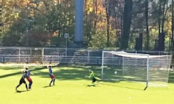 Piłkarki Resovii (przy okazji, to drugi klub, po Kauno Žalgirisie, który widziałem zarówno w wydaniu męskim jak i żeńskim) wyglądały w tym meczu dużo lepiej, od początku prowadziły grę, która przez większość czasu toczyła się na połowie piłkarek z Wodzisławia. Pierwsza dobra akcja Resovii miała miejsce w 13. minucie - Bednarz w polu karnym wystawiła do Matuszek, ale jej strzał zablokowała Marzec; piłkę dobijała Kurasz, ale przestrzeliła. Dwie minuty później Resovia zaatakowała skutecznie - Kaput przyjęła górną piłkę, ograła przed polem karnym dwie kryjące ją zawodniczki i strzeliła w długi róg bramki strzeżonej przez Rybacką. W 20. minucie Rybacka bez problemu obroniła strzał z dystansu Dziury. A w 24. minucie piłkarki SWD niespodziewanie wyrównały - Grzonka zdecydowała się na rajd lewym skrzydłem i będąc przy linii końcowej, zagrała w pole bramkowe - tam Gałuszka-Bielica wyprzedziła interweniującą Pieniążek (bramkarka) oraz Dziurę i sprytnie skierowała piłkę do bramki. W 33. minucie rzut wolny miała Resovia - wykonująca go piłkarka zagrała piłkę do Kaput, ale ta oddała strzał w środek bramki, który obroniła Rybacka. Parę minut później miał miejsce korner dla gości, a Kasperska wyręczyła Rybacką, wybijając piłkę lecącą w światło bramki. W 40. minucie po wrzutce w pole karne, Kurasz tyłem do bramki oddała dość nietypowy ekwilibrystyczny strzał, który przeleciał nad bramką. W 43. minucie po zgraniu w pole bramkowe SWD piłki próbowały sięgnąć Kurasz i Rybacka, ale żadnej się nie udało i gospodynie rozpoczęły od autu bramkowego. Do przerwy udało im się utrzymać raczej korzystny remis.