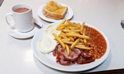 Tam mogłem się w końcu rozejrzeć za czymś do jedzenia - z racji tego, że były to już tańsze przedmieścia Londynu i dzielnica mniej muzułmańska niż Upton (osobiście szanuję islam i jestem nawet jego znawcą, ale... ja bym chciał zjeść jakiś bekon, w końcu Mt 15,11), znalazłem tam mój ulubiony rodzaj lokalu, czyli podrzędny bar z angielską kuchnią, gdzie można dostać English breakfast. W programie jajka sadzone, kiełbaski, bekon, fasolka, frytki, wszystko polane ketchupem, HP sauce i malt vinegar, a do tego herbata z odrobiną mleka. Po posileniu się tymi specjałami kupiłem jeszcze w kiosku parę ciekawych gazet, m.in. Non-League Paper - gazetę w całości poświęconą futbolowi poniżej League Two (!), w końcu udałem się na the Hive Stadium, gdzie swoje mecze rozgrywa piątoligowy Barnet i kobiecy zespół London Bees. No i od 2019 roku oczywiście żeńska sekcja Tottenhamu.