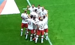 Inną kwestią jest to, że wtedy nie do końca wiadomo, co właściwie należy śpiewać - akustyka Narodowego jest mówiąc eufemistycznie nie najlepsza i często gdy fala dopingu docierała do naszego sektora, nie byłem w stanie rozróżnić, co jest śpiewane - Polska! Polska! , Polska, Biało-Czerwoni! , Biało-Czerwone to barwy niezwyciężone! , W górę serca, a Polska wygra mecz! , czy coś innego (w każdym razie, więcej piosenek w repertuarze nie było). Jedyne, co zostało odśpiewane naprawdę spójnie, to oczywiście Mazurek Dąbrowskiego przed meczem (dwie pełne zwrotki - jak przypominał spiker). W trakcie meczu Hymn nie był śpiewany - co mnie trochę zdziwiło, bo zwykle kibice pod koniec meczu dochodzą do wniosku, że odśpiewają Hymn jeszcze raz, bo to jedyna dłuższa piosenka , którą każdy zna. Przy okazji hymnów - bardzo przyzwoicie zachowaliśmy się jako kibice podczas hymnu Albanii, po którym rozległy się brawa na cały stadion. Biorąc pod uwagę, że jeśli chodzi o piłkę reprezentacyjną, ostatnio oglądałem w telewzji finał EURO na Wembley - jakaś taka fajna odmiana.