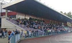 Alytaus stadionas, czyli Stadion Olicki, położony jest na południowych przedmieściach Alytus, gdzie znajdują się już tylko domki jednorodzinne. Stadion sąsiaduje z miejskim parkiem, a jakiś kilometr na południe od niego znajdują się jakieś jeziorka. Sam stadion położony jest w zasadzie w lesie i ze wszystkich stron otaczają go drzewa. Zgodnie z info z Wikipedii, stadion liczy aktualnie 3748 miejsc i ostatnio był odświeżany w 2010 roku.