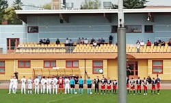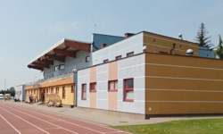 Stadion Miejski w Krasnymstawie, co prawda nie im. Marszałka Piłsudskiego, ale leżący przy ulicy Piłsudskiego, to wbrew pozorom, bardzo ciekawy obiekt. Składa się on z dwóch trybun - południowej i północnej, znacznie się od siebie wzajemnie różniących (południowa nazywa się Odkryta, a północna - Kryta). Trybuna północna to tak naprawdę budynek klubowy, w którym znajdują się m.in. biuro, szatnie, mała hala sportowa i sala konferencyjna (Napis na drzwiach prowadzących do salki był wydrukowany piękną czcionką Comic Sans), a na pięterku znajdowało się wyjście na zadaszoną trybunę, na której znajdowały się 3-4 rzędy żółtych krzesełek. Trybuna ta zapewniała odpowiednią widoczność, ale ze względu na prażące słońce ostatecznie zdecydowałem się na oglądanie meczu z trybuny południowej. Ogólnie, kursowałem między trybuną południową i północną jak dzika małpa i dopiero po meczu (czytając treść zerwanego plakatu zapraszającego na mecz) zorientowałem się, że cena biletów różniła się w zalezności od zajmowanej trybuny. Na szczęście, zakupiłem bilet w droższej taryfie (na Krytą), tak więc przynajmniej nikogo nie oszukałem. Ale za każdym razem gdy łaziłem z trybuny południowej w stronę północnej, mogłem wydawać się postronnym kibicom niesamowitą cebulą, która najpierw zapłaciła 8 PLN za wejście na trybunę Otwartą, a następnie przemieściła się na Krytą, zaoszczędzając tym samym całe 2 PLN.