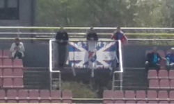 Jak już zostało to mimochodem wspomniane, naprzeciw trybuny północnej - Krytej, znajduje się trybuna południowa - Odkryta. Architektonicznie różni się ona znacznie od tej Krytej - o ile Kryta to pewnego rodzaju improwizacja, czyli tak naprawdę budynek klubowy z krzesełkami, to trybuna Odkryta to po prostu standardowa trybuna stadionowa licząca na oko jakieś 1500 miejsc (krzesełka na trybunie są w barwach czerwono-niebieskich). Co prawda zasiadaniu na trybunie Odkrytej nie towarzyszy aż taki splendor jak na trybunie Krytej (2 PLN robi różnicę - toż to jeden Żubr, czy inny Kustosz), ale jej główną zaletą jest fakt, ze w słoneczne dni słońce nie daje tam prosto w twarz. Dlatego też, wolałem oglądać mecz z perspektywy właśnie trybuny Odkrytej.