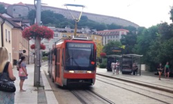 Po zameldowaniu się w zaskakująco dobrym hotelu, wybrałem się wraz z braćmi na krótką wycieczkę do centrum Bratislavy. Wsiedliśmy w tramwaj (w Bratislavie nie ma metra, ale za to sieć tramwajowa jest bardzo przyzwoita), który utknął w okolicach centrum, ponieważ musiał przepuścić... marsz środowisk LGBT. O ile dobrze zrozumiałem, tramwaj ostatecznie został puszczony objazdem. Wysiedliśmy w okolicach mostu SNP (z legendarną restauracją UFO ), następnie wybraliśmy się na wzgórze zamkowe, zobaczyliśmy pomnik IX-wiecznego słowackiego bohatera narodowego, Svätopluka (choć wielu słowackich historyków wskazuje, że ciężko jest nazwać Svätopluka Słowakiem, a jedyne co miał on wspólnego z przodkami dzisiejszych Słowaków to to, że... ich podbił i sobie podporządkował), skąd zeszliśmy w stronę Starego Miasta oraz przystanku tramwajowego. W okolicach Starego Miasta znowu utknęliśmy, ponieważ zablokował nas tym razem... chrześcijański festyn rodzinny (jakże zaskakująca koincydencja terminów z marszem LGBT), ale jakoś udało się nam przecisnąć. Dojechaliśmy tramwajem na stację Nová doba, skąd doszliśmy na piechotę na stadion.