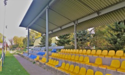 Sama trybuna stadionowa jest to standardowa trybunka składająca się z czterech betonowych stopni na niewielkim ziemnym wale. Liczy ona ok. 500 krzesełek, przy czym niektóre krzesełka były zniszczone, a niektórych brakowało. Na trybunie panował też pewien bałagan (walały się tu puste małpki czy jakieś opakowania po chipsach), ale to akurat była anomalia, bo jeden z zasiadających kibiców zapytał drugiego ze zdziwieniem co tu się działo? - w każdym razie, obiekt może niestety nie być wystarczająco dobrze chroniony po zmroku.
