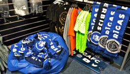 Ku mojemu pozytywnemu zaskoczeniu, na stadionie działał stacjonarny sklepik Riga FC (nie zwykłe stoisko, a cały sklepik). Wpadłem tam, rozejrzałem się i bardzo szybko zdecydowałem się na wzięcie jasnoniebieskiego szalika oraz kubka Riga FC (w kasie wziąłem też darmowy nieaktualny program meczowy z eliminacji do Ligi Konferencji Europy zawsze to jakaś pamiątka). Zdziwił mnie trochę fakt, że w sklepie można było również kupić ciemnoniebieskie szaliki z herbem RFS; dopiero gdy zasiedliśmy na trybunie i zacząłem się przyglądać innym piknikom, zorientowałem się, że był to specjalny szalik z okazji derbów Rīgi, na którym znajdowały się herby obydwu ryskich drużyn (przyznam, że wtedy trochę pożałowałem swojego wyboru szalika).