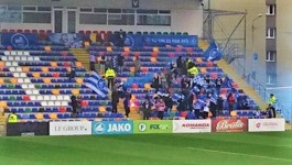 Poza zblazowanym piknikiem mieliśmy na szczęście na stadionie dwie grupy kibicowskie, które przez cały mecz prowadziły doping. Przede wszystkim, mieliśmy kilkudziesięcioosobową grupę kibiców godpodarzy, którzy byli ulokowani na trybunie zabramkowej. Większość z nich miała na sobie jasnoniebieskie koszulki oraz szaliki klubowe, a ponadto mieli parę bębnów, kilkanaście flag do machania i kilka flag rozłożonych na sektorze (flagi nie miały na sobie złożonych haseł, właściwie na każdej z nich znajdował się napis RIGA , bądź RIGA FC ), w tym na oko 7-metrową niebiesko-białą flagę miasta. Dopingowali oni dość wytrwale swoją drużynę, nie zrażając się serwowaną przez piłkarzy padaką. Z kolei na południowym skraju trybuny wschodniej (prostej) znajdowała się kilkudziesięcioosobowa grupa kibiców gości. Była ona mniej spektakulna - tylko część osób miało na sobie ciemnoniebieskie szaliki. Opróćz tego mieli jednak kilka flag do machania, a w górnej części sektora powiesili cztery niebieskie flagi, w tym dwie z herbem klubu i jedną o treści TU UN ES PAR RFS (Ty i ja za RFS ). Po końcowym gwizdku obydwie grupy odpaliły po kilka rac - gośćie z racji zwycięstwa swojej drużyny, a gospodarze z racji tego, że... skoro już je wnieśli ciekawe gdzie, to szkoda byłoby je zmarnować.