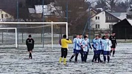 Na przebieg dzisiejszego meczu rzutowała pogoda - murawa była pokryta piękną białą warstwą śniegu. Piłkarze obydwu drużyn wyszli na boisko z różnego rodzaju czapkami, kołnierzami i innymi elementami ubioru, które chyba nie są dopuszczane przez przepisy FIFA, ale ani sędzia, ani obserwator nie mieli większych obiekcji. Piłkarze poruszali się po murawie nieco niezdarnie, mieli pewne problemy z kontrolowaniem żółtej piłki (dobrze, że piłka nie była biała, ponieważ powinna się wyrażnie odróżniać od boiska... ale z perspektywy trybuny nie była to jakaś wielka poprawa), a czasami nawet z utrzymaniem równowagi. W trakcie meczu mieliśmy kilka przypadków źle wyrzuconych autów, ale nie wiem, czy to również było spowodowane pogodą. Teoretycznie cały ten chaos powinien faworyzować słabszą drużynę (Sęp jest w czołówce ligi, podczas gdy Kolektyw bierze udział w walce o spadek), ale... no, już po wyniku widać, że tak nie było.