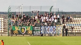 Kibice gospodarzy mieli dość standardowy repertuar, a zaczęli chyba od Tylko zwycięstwo, Aviunio, tylko zwycięstwo! . Następnie wykrzyczano m.in. dość standardową zagrzewającą do boju piłkarzy piosenkę, gdzie pada m.in. ten mecz musimy wygrać! Wygramy, wygramy, wygramy! i takie tam - uprzedzając pytania, kiedy w końcu przyszło do najbardziej istotnej linijki, wykrzyczano po prostu trzy razy Stalówkę pokonamy! . Ze względu na stosunkowo podobną genezę powstania Stalowej Woli i Świdnika, a także podobne rodowody ZKS Stal i FKS Avia (która początkowo również nazywała się RKS Stal ), pomiędzy klubami nie ma żadnych animozji. Poza tym, pozdrowiono Ładę Biłgoraj (chyba aktualnie jedyna zgoda Avii), przesłano Pozdrowienia Do Więzienia i odśpiewano jedną dłuższą piosenkę: Gdzieś na końcu świata, gdzie lotniczy zakład jest, jest taka drużyna co się Avia Świdnik zwie! Avio, Avio, Avio ukochany klubie nasz, pokaż, pokaż wszystkim, jak Ty w piłkę pięknie grasz! Mniej więcej w 20. minucie meczu na stadionie stawili się również kibice gości. Stawili się oni w swoim sektorze (na trybunie północnej) w liczbie ok. 100 i rozwinęli w sektorze trzy flagi - jedną dość estetyczną zielono-czarną flagę z herbem drużyny, drugą z dość głupawym napisem Love Stalówka - Hate Antifa (naprawdę, Antifa zasłużyła aż na umieszczenie jej nazwy na fladze?) oraz flagę zgodową Łady Biłgoraj (uważni Czytelnicy pewnie zauważyli, że to również zgoda Avii). Kibice Stalówki mieli tendencję do katowania swoich piosenek aż do znudzenia, dlatego też mogłem całkiem dobrze zarejestrować słowa poszczególnych piosenek. Katowali oni głównie następującą piosenkę: Hej, w Naszej Stalowej, gdzie kominy w herbie są, jest taka drużyna, która w trzeciej lidze gra! Heja, hej, Stalowo, Ty strzeliłaś bramek sto! Jeszcze, jeszcze jeden, jeszcze jeden taki gol!