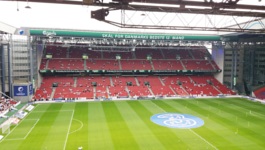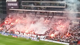 Wbrew temu, czego się spodziewałem i do czego przyzwyczaiły mnie inne stadiony w Danii, na Parken na trybunach zabramkowych nie ma miejsc stojących. Oczywiście zarówno kibice gospodarzy zgromadzeni na trybunie wschodniej, jak i kibice gości znajdujący się w swoim sektorze od zachodu stali przez cały mecz, ale obydwie te trybuny były w pełni pokryte składanymi czerwonymi krzesełkami. Co do trybuny zabramkowej, dość ciekawym elementem meczu był fakt, że kiedy kibice gospodarzy zaczynali po niej skakać, na telebimach Parken (na stadionie są dwa) wyświetlano w języku duńskim ostrzeżenie, że... skoordynowane podskakiwanie na sektorze nie jest dozwolone. Czy naprawdę stadion jest w tak złym stanie?