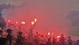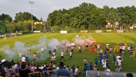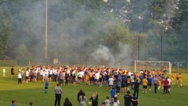 Końcowy gwizdek w Sulejówku również nie oznaczał, że można już świętować - w Mińsku Mazowieckim utrzymywał się co prawda korzystny, remisowy rezultat, ale tam wciąż grali, podczas gdy tutaj piłkarze na murawie i kibice na trybunach trwali w nerwowym oczekiwaniu, śledząc swoje relacje/ transmisje. Po kilku nerwowych minutach nagle (można by powiedzieć, znikąd ) na stadionie rozległa się wrzawa, a kibice momentalnie zrobili pitch invasion z racami, aby świętować wraz z piłkarzami awans do III ligi.