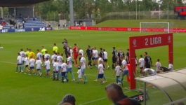 Druga połowa rozpoczęła się dla gospodarzy nieźle, bo już w 46. minucie świetny strzał z ok. 30 metrów oddał Kamil Kort, ale Eryk Mirus był na posterunku i odbił to na róg. W 51. minucie to goście wyszli jednak na prowadzenie - i to o dziwo, nie po kontrze, a raczej po ataku pozycyjnym, który strzałem z 20 metrów zakończył Dawid Wolny. Strzał nie był jakiś efektowny, ale wpadł do bramki tuż przy słupku i był przy okazji bardzo mocny (szczerze mówiąc, nie wiem, czy czasem nie było to uderzenie z czuba). Po tym golu Polonia już całkowicie wycofała się do obrony, podczas gdy piłkarze Kotwicy nieudolnie próbowali ją ukłuć. W 69. minucie któryś z piłkarzy Kotwicy próbował wymusić rzut karny, ale to również było nieudolne - i to na tyle, że sędzia zlitował się i nawet nie dał za to żółtej kartki. W 89. minucie Kotwicy udało się złożyć groźną sytuację, kiedy Olaf Nowak bardzo dobrze dorzucił do Arona Stasiaka, ale ten uderzał głową z miejsca i trafił jedynie w boczną siatkę. W doliczonym czasie mimo kilku rozpaczliwych wrzutek Kotwicy nie udało się wyrównać stanu gry i mecz zakończył się dość niespodziewaną wygraną gości.