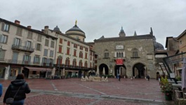 Po co przybywa się na weekend do innego kraju? Oczywiście, żeby popracować zdalnie. Pierwszą część piątku spędziliśmy przy komputerach, gdzie każdy łączył się ze swoim pracodawcą. Kiedy już A. odrobił swoje obowiązki u Szwajcara, a ja swoje u Niemca (ale za to za polską pensję), opuściliśmy nasze lokum mniej więcej o godzinie 17:00 w celu zwiedzania miasta. Nasze lokum znajdowało się w dzielnicy Citta' Alta (Stare Miasto), tak więc zwiedzanie mogliśmy rozpocząć od razu po wyjściu - Bergamo jest bowiem naprawdę ładnym miastem, a położone na wzgórzu, otoczone murami obronnymi Stare Miasto jest wyjątkowo godne polecenia. Miejscowość jest dość niedoceniana, ponieważ turyści kojarzą ją głównie z pierwszej w Europie masowej fali zachorowań na COVID lotniska Mediolan-Bergamo, na które przylatują tańsi operatorzy niż na Mediolan-Malpensa. Bergamo jest więc traktowane zazwyczaj jako niepotrzebny przystanek w trakcie podróży do Mediolanu (sam poczułem się dość oryginalnym turystą, ponieważ przyleciałem specjalnie do Bergamo i nawet nie pojawiłem się w Mediolanie).