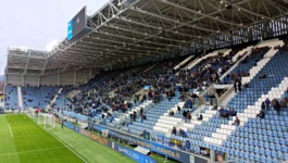 Poza dwiema trybunami prostymi i dwiema nowoczesnymi trybunami zabramkowymi (z czego jedna jest ciągle w budowie), przy jednym z narożników boiska znajduje się bardzo specyficzny sektor, który jest przeznaczony dla kibiców gości. Nie wiem, czy jest to jakaś tymczasowa dostawka, czy może fragment starej południowej trybuny zabramkowej (czyli starej curvy - hehe, łapiecie?), w każdym razie, chciałem zaznaczyć, ze poza omawianymi już tutaj czterema trybunami, na stadionie znajduje się jeszcze piąta.