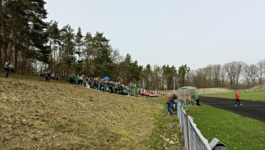 Mecz zgromadził całkiem dużą liczbę widzów, którą jednak bardzo trudno jest mi oszacować ze względu na specyficzny układ stadionu i tego, że znaczna część widzów nie była na żadnym sektorze, tylko oglądała mecz stojąc na wale ziemnym (tak jak zresztą ja). Na potrzeby chomiczej relacji przyjąłem, że widzów było łącznie ok. 500. Pierwszą połowę oglądałem w pobliżu sektora fanatyków, na którym znajdowały się dwie flagi Cariny oraz kilkudziesięciu fanów w barwach, którzy od początku meczu prowadzili dobry doping przy akompaniamencie bębna. Wykrzykiwali takie hasła jak Carina Gubin! , MKP, MKP , UCG, UCG (chodziło zapewne o Ultras Carina Gubin), czy Zieloni, Zieloni! . Z dłuższych piosenek, śpiewano takie rzeczy jak: Carina MKP, z Tobą po życia kres! Na dobre i na złe będziemy wspierać Cię!
