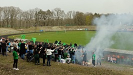 Poza tym, pozdrowiono zgody - na pewno padła nazwa Polonia Chodzież! , ale więcej nazw nie udało mi się wychwycić. Według informacji z Internetów, prawdopodobnie chodziło o Nielbę Wągrowiec i o Noteć Czarnków, ale nie należy wierzyć we wszystko w Internetach, bo ta sama strona podaje, że Carina ma kosę ze Stilonem, podczas gdy w trakcie meczu w kierunku przeciwników nie padły żadne wyzwiska. Pod koniec pierwszej połowy kibice schowali się pod małą sektorówką, po czym zrobili oprawę składającą się z pirotechniki (raczej skromnej, było z tego trochę światła i dymu) oraz zielono-czarnych chorągiewek. W drugiej połowie fani Cariny oczywiście trochę stracili rezon (szczególnie przy stanie 0:4) i zaczęły padać takie hasła jak Walczyć, grać, zapierdalać! (po piątym golu dla Stilonu padło chyba nawet Carina grać, kurwa mać! ), jednak wytrwali oni w dopingu aż do końca, a po końcowym gwizdku podziękowali piłkarzom za walkę.