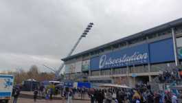Ostseestadion (tłumacząc na polski: Stadion Bałtycki ) to całkiem fajny obiekt, choć oczywiście nie wytrzymuje on porównania z nowoczesnymi obiektami na zachodzie RFN. Oficjalna pojemność stadionu to 29.000 miejsc, wliczając miejsca siedzące i stojące. W przypadku zamontowania tymczasowych krzesełek na sektorach stojących pojemność obiektu spada podobno do ok. 25.000 miejsc (przy czym, gdy byłem na stadionie, wydawało mi się, że sektory stojące znajdują się jedynie w trzech rogach stadionu, stąd przyznam, że nie wiem skąd bierze się aż 4 tysiące różnicy).