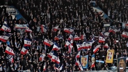 Może komuś uda się dopasować te słowa do rytmu i zrozumie jak to było wyśpiewywane. Sytuacja, w której na stadionie funkcjonują dwa odrębne młyny jest na pewno mocno nietypowa, ale nie było między nimi żadnych antagonizmów. Powiedziałbym, że na stadionie panowało socjalistyczne współzawodnictwo dopingu. Z innych rzeczy, w drugiej połowie na młynie na trybunie zabramkowej rozpoczęło się duże flagowisko.