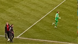 W drugiej połowie Hansa raczej kontrolowała przebieg gry i strzeliła nawet kolejne dwa gole, choć akurat żaden z nich nie został uznany. Pierwszy padł na początku 2. połowy w wyniku katastrofalnego rozegrania wznowienia gry - jeden z obrońców zagrał z piątego metra do Gorki, a bramkarz Sandhausen przy próbie dalekiego zagrania... nie trafił nogą w piłkę. Futbolówkę przejął Christian Kinsombi i spokojnie wszedł z nią do bramki, jednak sędzia nie uznał tego gola, wskazując, że w momencie wznowienia gry Kinsombi wbiegał już w pole karne gości (patrząc na powtórki, nie jestem przekonany). Druga z nieuznanych bramek padła pod koniec drugiej połowy - jeden z graczy Hansy zagrał lagę z rzutu wolnego w kierunku pola karnego gości, piłkę zgrał głową Ryan Naderi, a Tim Krohn pokonał Gorkę strzałem po ziemi. Sędzia uznał jednak (tym razem już bez większych kontrowersji), że Naderi w pojedynku główkowym wygrał pozycję, odpychając obrońcę gości. Wynik nie ulegl już zmianie i Hansa bezpiecznie dociągnęła korzystny rezultat do końcowego gwizdka.