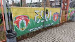 Na ogrodzeniu oddzielającym naszą trybunę od boiska było zawieszone kilka flag - Puszcza Fans , Os. Piaski , 1923 , a także flaga fan clubu Puszczy z... Wiednia oraz flaga zgody z Krakowa (Garca ). A propos flag, dość zabawna była zasłyszana przeze mnie rozmowa pomiędzy jednym z widzów znajdującym się w niższych rzędach trybuny a kibicem, który akurat wieszał flagę. Widz zapytał A czy można tę flagę trochę niżej? , a kibic z flagą kazał mu wypieprzać ze stadionu odpowiedział Proszę i obniżył ją o jakieś 30-50 centymetrów (więcej się już nie dało). Przed meczem w centrum sektora zostało rozmieszczone mnóstwo zielonych i żółtych flag do machania - na szczęście ja znalazłem się bardziej po boku trybuny i nie załapałem się na machajkę, dzięki czemu mogłem sobie do woli cykać zdjęcia.