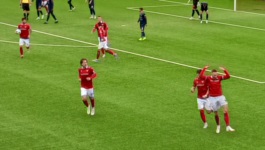 Druga połowa rozpoczęła się w istnie absurdalny sposób, ponieważ... goście wyszli na prowadzenie już w jej 12. sekundzie. Jeden ze stoperów Vestri zagrał lagę w kierunku pola karnego gospodarzy, piłkę głową strącił Vladimir Tufegdzić, a obrońca Valura, Orri Sigurdur Ómarsson ubiegł Diego Montiela, kierując przy tym piłkę do własnej bramki (Stefan Thor Agustsson nie miał w tej sytuacji nic do powiedzenia, został idealnie przelobowany). Bramka podrażniła piłkarzy Valura, którzy zmienili nastawienie na zdecydowanie bardziej ofensywne niż do tej pory. W 55. minucie Jónsson wbiegł z prawego skrzydła w pole karne Vestri i oddał mierzony strzał w kierunku okienka bramki gości. Smit tylko stał i patrzył jak piłka... odbija się ostatecznie od słupka i wraca wprost w jego ręce. W 65. minucie gospodarze w końcu wyrównali - długą piłkę na dobieg w pole karne zagrał Aron Jóhansson, przed linią końcową zdołał ją jeszcze wycofać Haraldsson, a Patrick Pedersen oddał silny strzał nie do obrony. Po wyrównaniu gra nieco się ustabilizowała - co prawda gospodarze nadal prowadzili grę, ale nie tworzyli już klarownych sytuacji. Najbliżej szczęścia byli w 81. minucie, kiedy po niezbyt udanym piąstkowaniu Smita piłkę głową próbował wybijać jeden z obrońców Vestri - jednak było to również niezbyt udane, ponieważ... skierował on piłkę w kierunku własnej bramki, lobując przy tym własnego bramkarza. Napastnik Valur i obrońca Vestri stoczyli przed opusczoną bramką kluczowy pojedynek główkowy, z którego zwycięsko wyszedł reprezentant gości. Ostatecznie mecz skończył się wynikiem 1:1, co należy ocenić jako sukces gości.