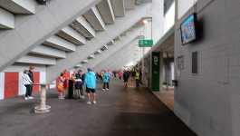 Z innych informacji, na stadionie znajdują się dwa telebimy, które umieszczone są na trybunach zabramkowych, na zadaszeniu (ale na szczęście nie zwisają z niego, dzięki czemu nie przesłaniają widoku ludziom na tych trybunach). Co ciekawe, na stadionie nie ma żadnych barier pomiędzy poszczególnymi trybunami, dzięki czemu w trakcie fotografowania obiektu doszedłem aż do przeciwległego narożnika (a mogłem pewnie i dalej, ale uznałem, że to już przegięcie). Na tyłach trybun oczywiście znajdowały się punkty cateringowe - w jednym z nich kupiłem bardzo smaczną lokalną kiełbasę za 8 CHF. Co ciekawe (i chyba charakterystyczne dla krajów z obszaru niemieckojęzycznego ), do kiełbasy nie dostałem żadnych sztućców i należało ją zjeść rękami. Na szczęście znalazłem sposób na oszukanie systemu, ponieważ w charakterze narzędzia chwytnego wykorzystałem bułkę, którą dostałem do posiłku.