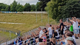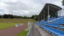 Stadion Tysiąclecia, jak sama nazwa wskazuje, powstał w latach 60. (a nawet dokładnie w 1966 roku - tego bym się w sumie nie domyślił, bo za PRL-u Chrzest Polski niekoniecznie był traktowany jako ta data, od której należy odliczać owe 1000 lat). Stadion prezentuje się jak typowy PRL-owski obiekt - mamy więc boisko, dookoła niego znajduje się bieżnia, a dookoła niej - ziemny nasyp, na którym znajdują się betonowe trybuny. Bieżnia niestety obecnie jest jedynie pierścieniem wydeptanej ziemi i nie wygląda jakby była ona w jakikolwiek sposób użytkowana (piszę niestety , bo skoro już znajduje się ona na stadionie i powoduje, że jest dalej od trybuny do boiska, to niech chociaż będzie ona użytkowana).