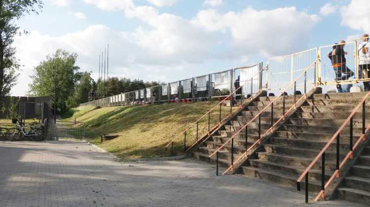 |  | | Po lewej widać wystawę plansz na 60-lecie Hutnika | |