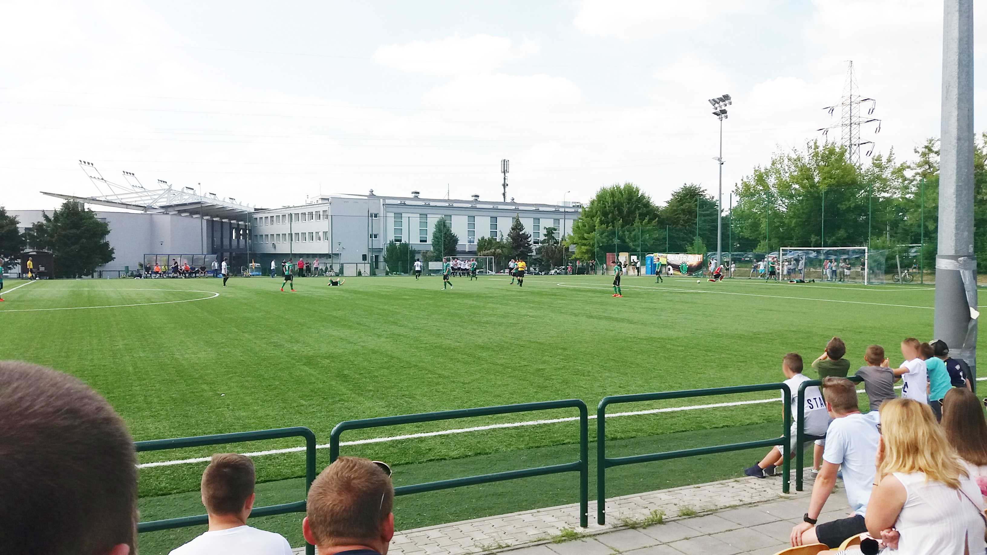|  | | Rozgrzewka; w tle widać arenę dzisiejszego barażu o Nice 1. Ligę Polską | |