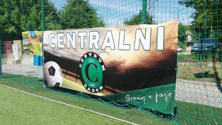 |  | | Flaga promująca klub Centrum - trochę materiał reklamowy, zawieszony na trytytkach | |